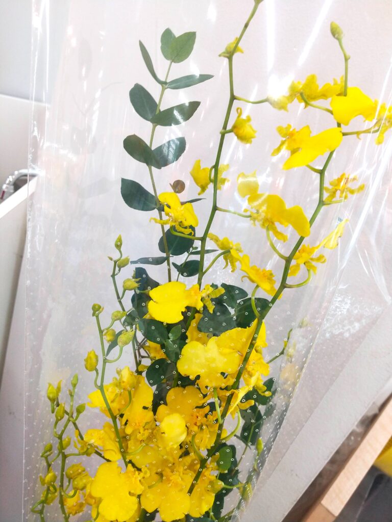 鮮やかなグリーンとイエローで目を引くオンシジューム!