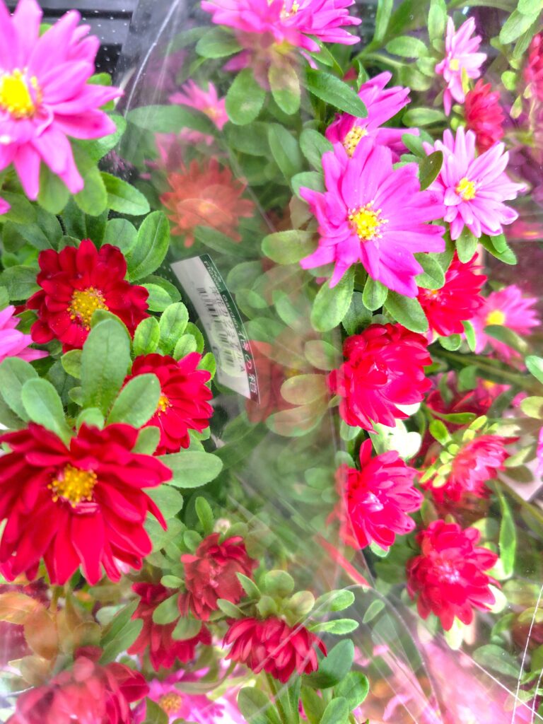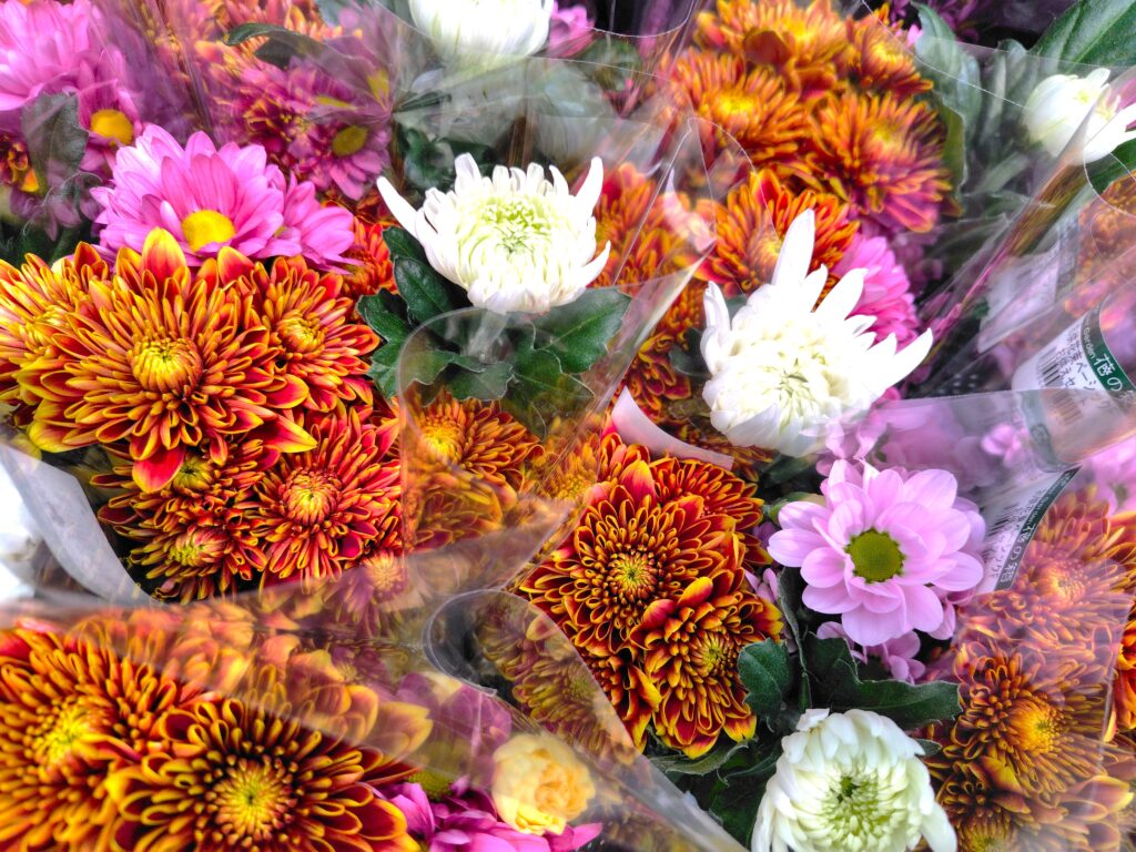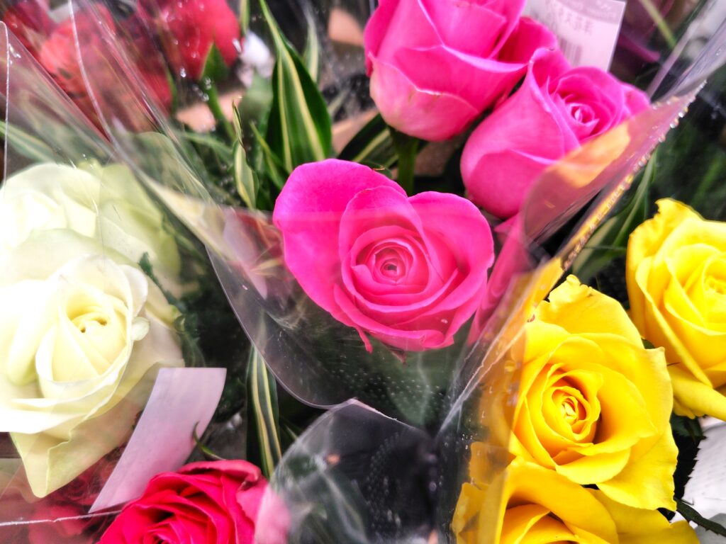 お花売り場では彩り鮮やかな花々がずらりと並び