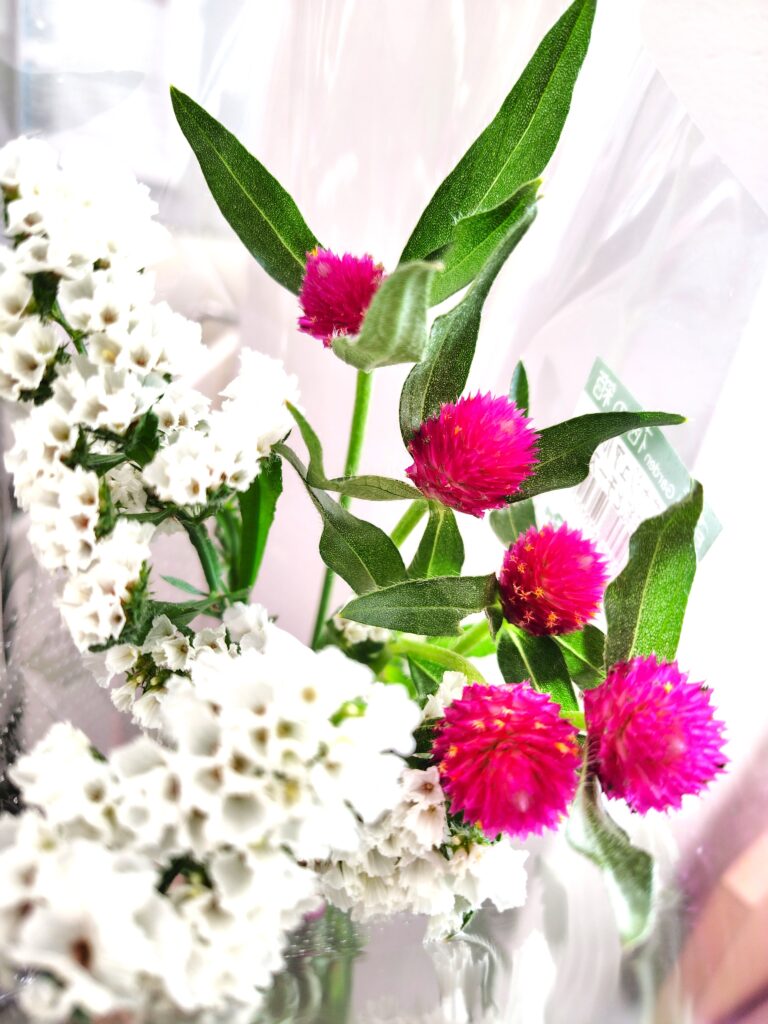 秋らしい雰囲気の千日紅とチースの束!