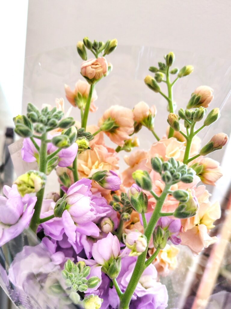 店内に並ぶお花もずいぶんと春らしくなってきました。